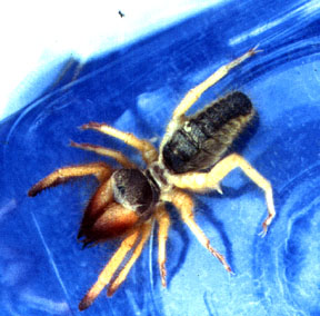 Windscorpion, about 7 cm from tip to tip, found at campsite on the plain west of Alid. These arachnids have lungs and move about very quickly relative to their scorpion and spider cousins. Evidently, they are not usually poisonous. This specimen was released a "safe" distance from camp. |