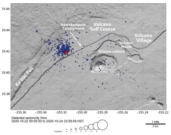 earthquake 10 km (6 mi) S of KapaÊ"au at 22 km (14 mi) depth on Oct. 21 at 11:59 a.m. HST.