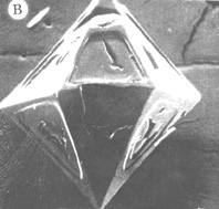 Secondary electron image of quartz phenocrysts from the the 1912 eruption at the VTTS, displaying semi-skeletal growth in which interiors of crystal faces grow more slowly than edges. This results in gaps filled by silicate melt that may later be trapped as inclusions. This results in gaps filled by silicate melt that may later be trapped as inclusions. Field is 1 mm across. From Clocchiatti (1975).