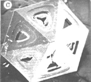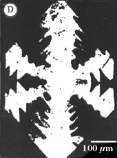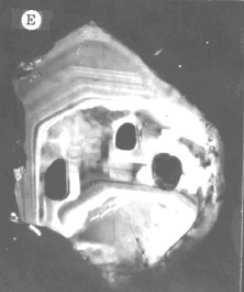 Transmitted-light photomicrograph of a section parallel to the c -axis through the center of a quartz phenocryst from a liparite, showing skeletal growth pattern (adapted from Lemmlein 1930), as might be expected for cystals in previous two photos.
