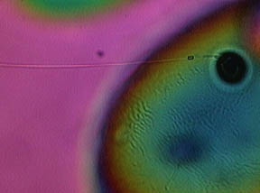 (E) Closeup of inclusion, bubble and capillary described above in (D).